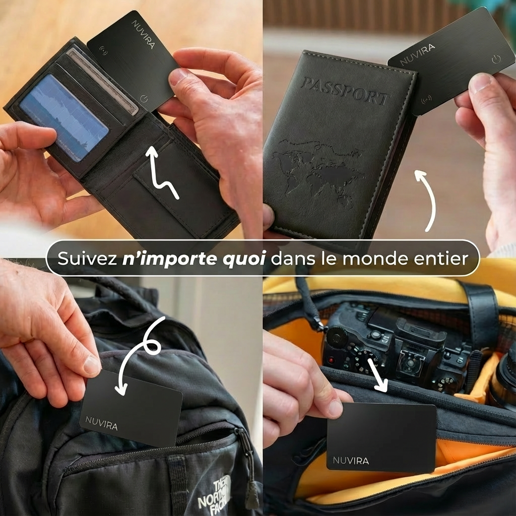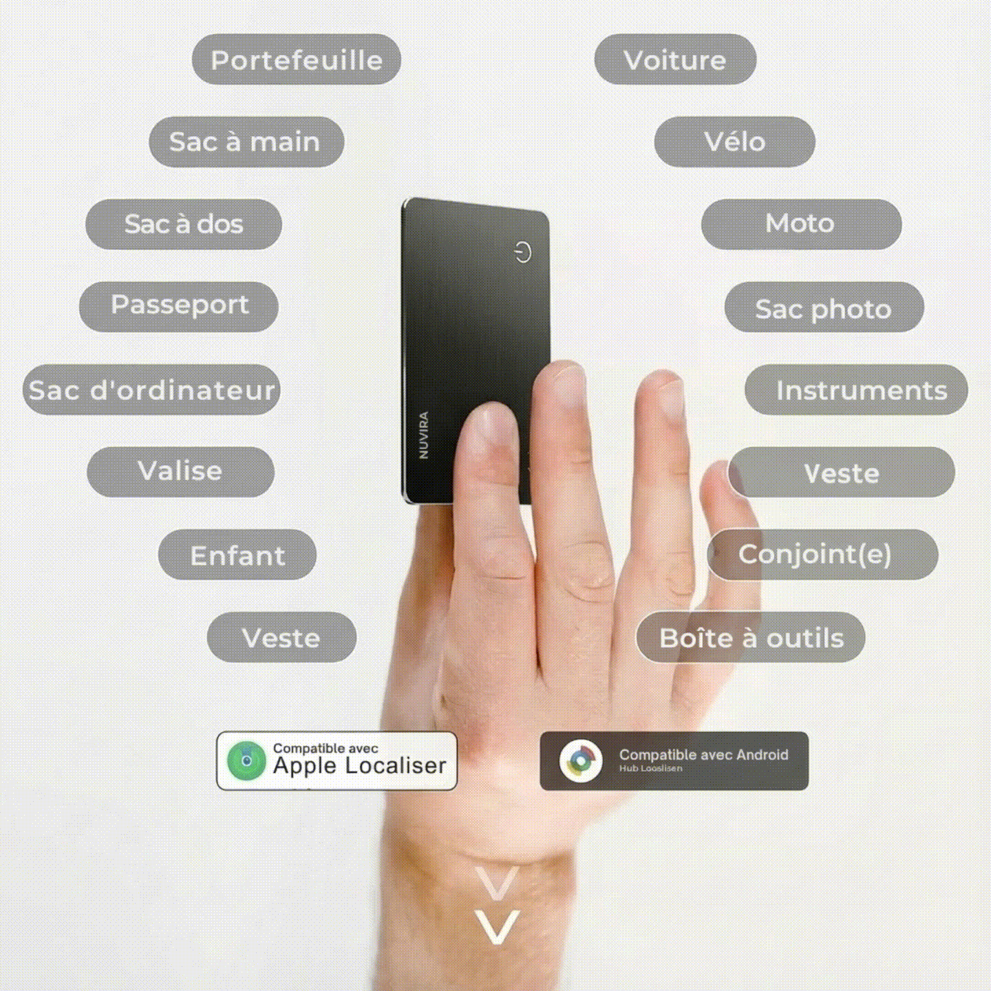 Avec moins de 1,8 mm d’épaisseur, notre carte de tracking se glisse partout, sans jamais se faire remarquer. Dans un portefeuille, un sac à main, une valise, une housse d’ordinateur ou même un étui d’instrument : elle sait se faire discrète. Sans jamais oublier sa mission principale : veiller sur vos objets.